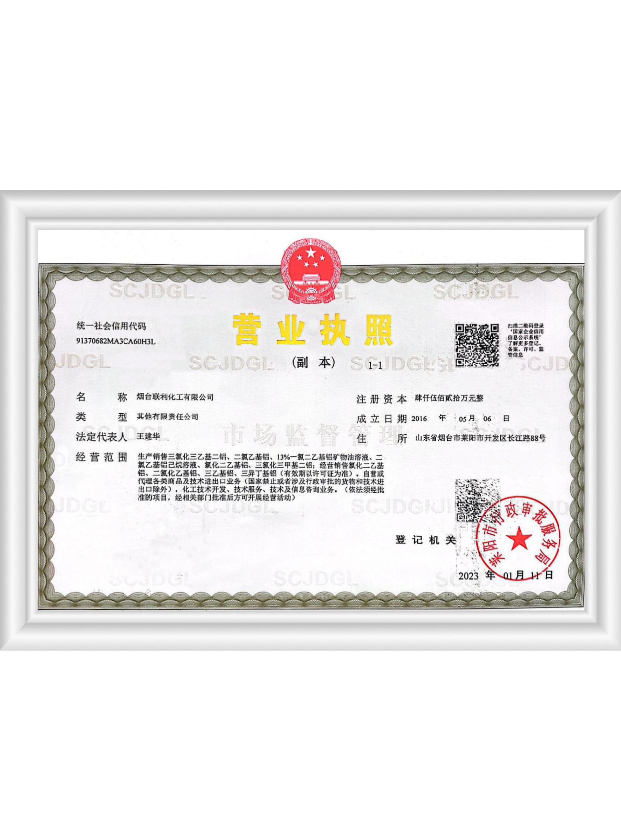煙臺(tái)聯(lián)利化工有限公司成立于2016年5月,位于煙臺(tái)市萊陽經(jīng)濟(jì)開發(fā)區(qū)長江路88號(hào),公司前身為1988年北京燕山石化公司技術(shù)轉(zhuǎn)讓成立的煙臺(tái)燕德化工有限公司。
